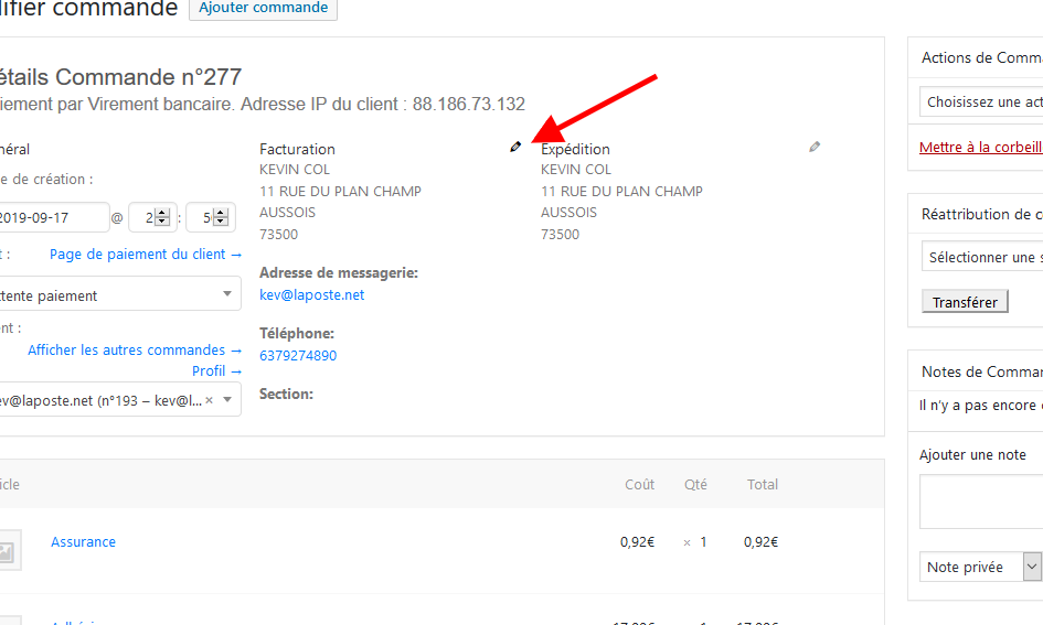 #4a Modifier les coordonnées dans une commande